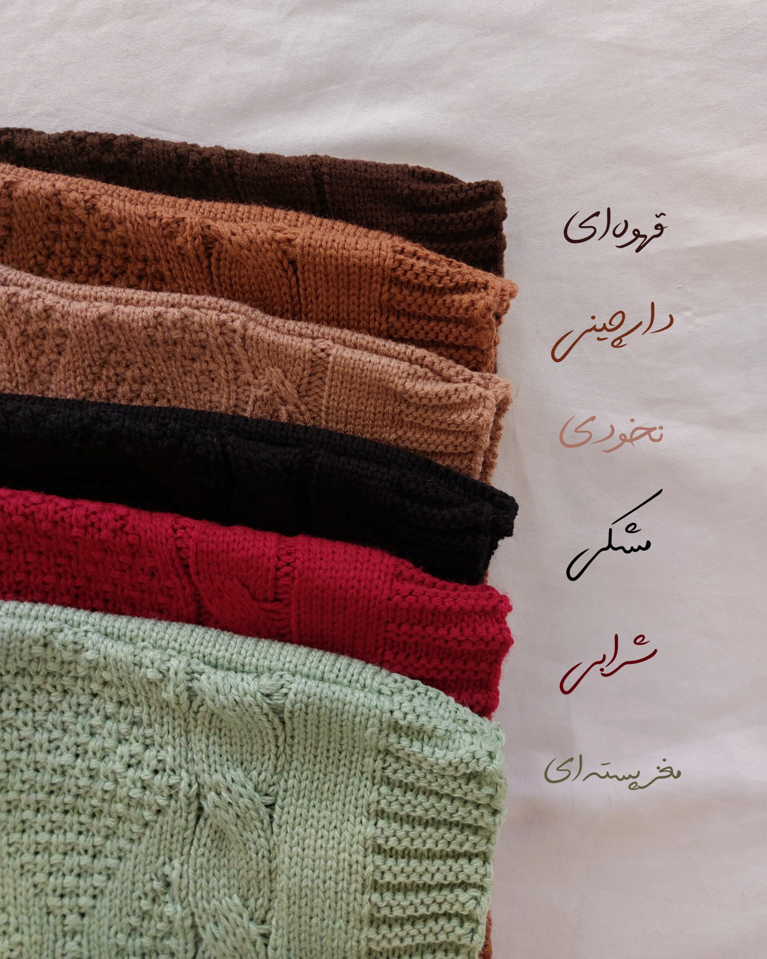 ژیله "خونه" ۵۸۸,۰۰۰ تومان رنگ مشکی قهوهای دارچینی نخودی شرابی مغز پستهای افزودن به سبد خرید مشخصات جنس:بافت اکریلسایز:فری(تا۴۶)رنگبندی: مشکی، قهوهای، دارچینی، نخودی، شرابی و مغز پستهایدور سینه ۱۱۸قد ۵۶دور بازو ۵۴