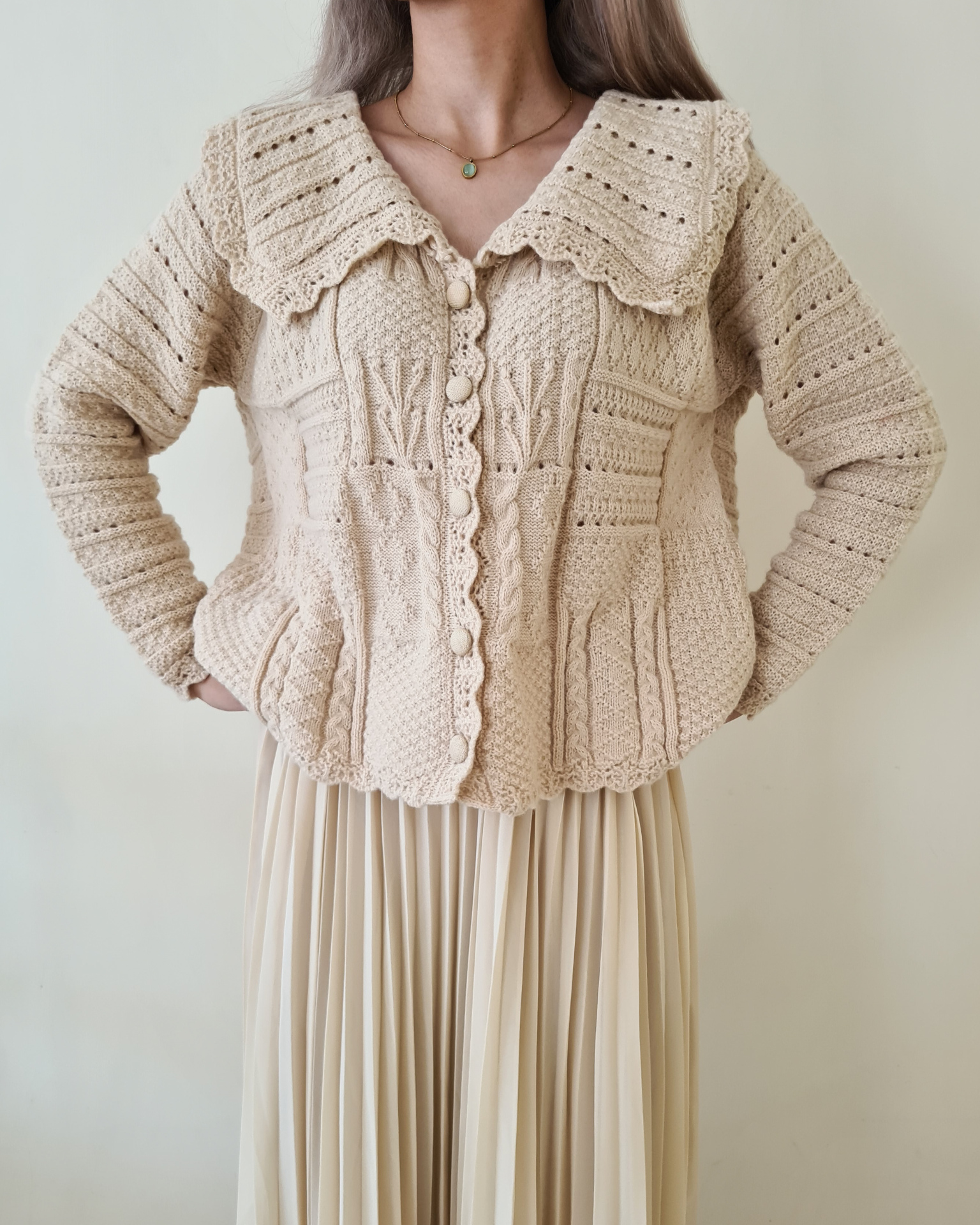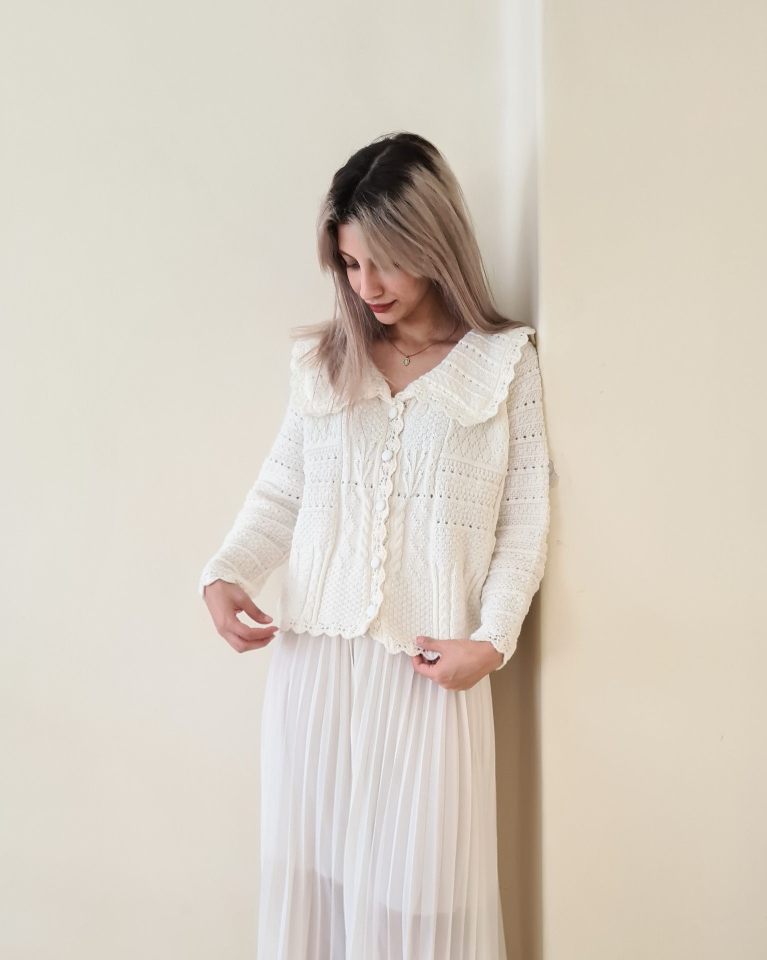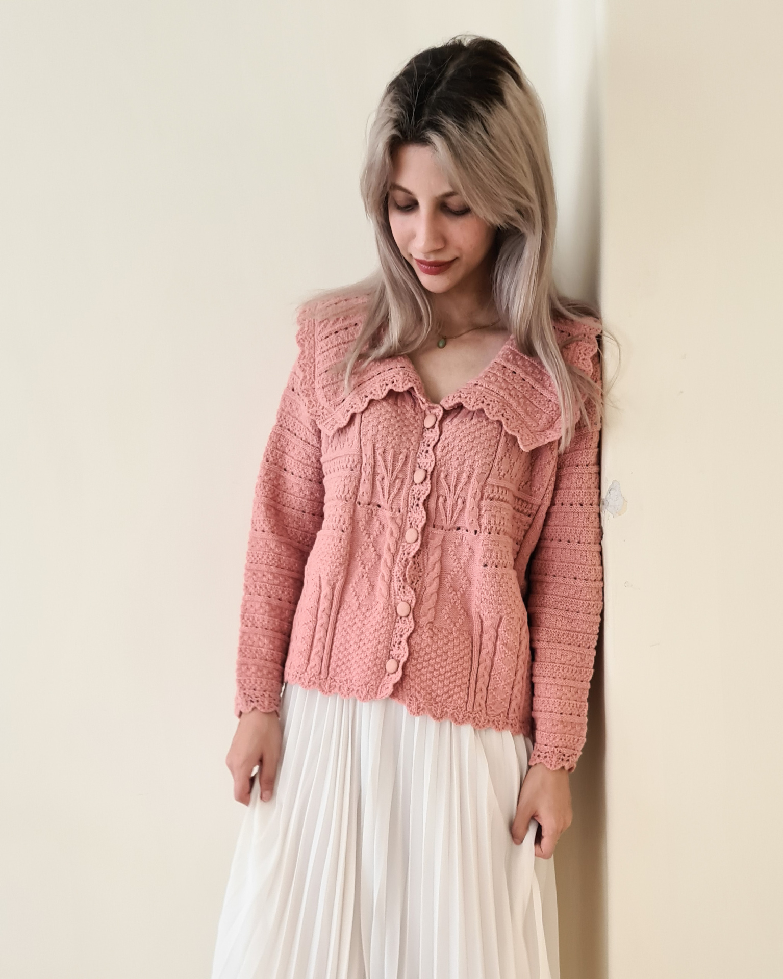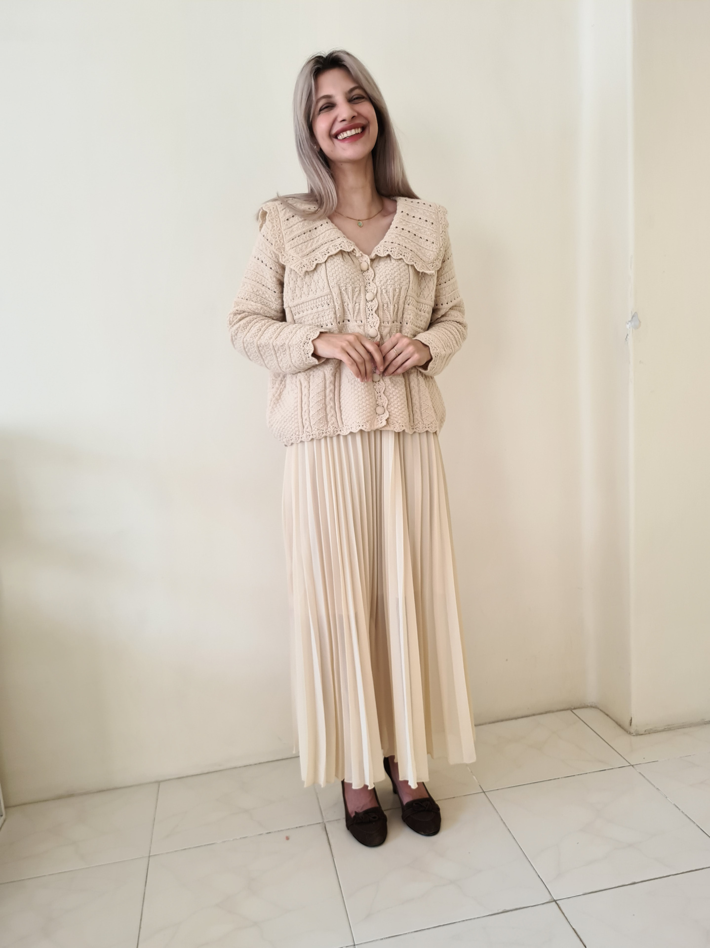 کاردیگن "نغمه" ۱,۴۵۰,۰۰۰ تومان فقط ۱ عدد باقیمانده رنگ شیری کرم کالباسی افزودن به سبد خرید مشخصات کاردیگن قلاب بافی، یقه ب ببه شدت نرم و لطیفه. اصلا تن و نمیخوره.سایز: فری سایزدور سینه: ۱۱۰قد: ۵۵