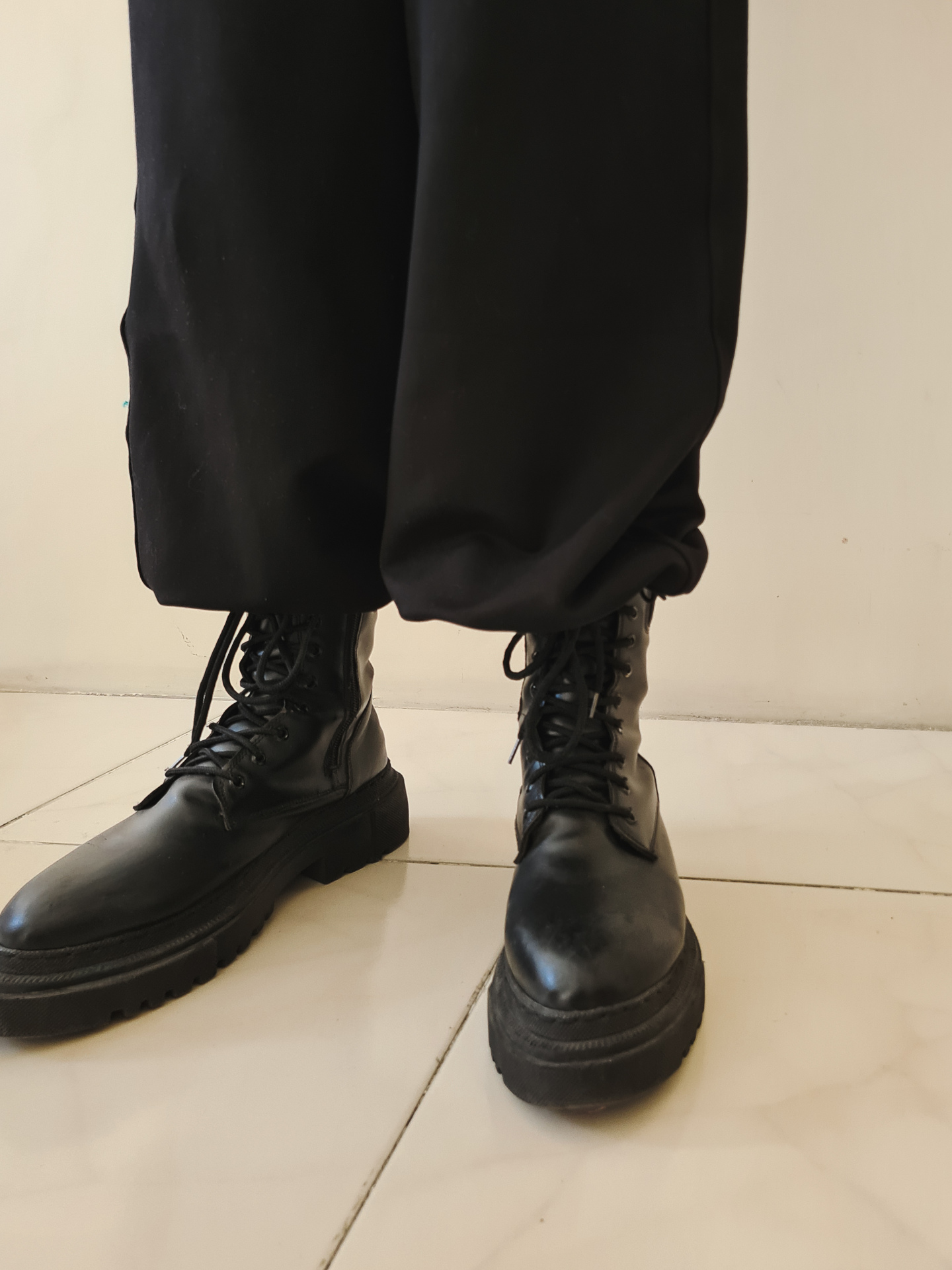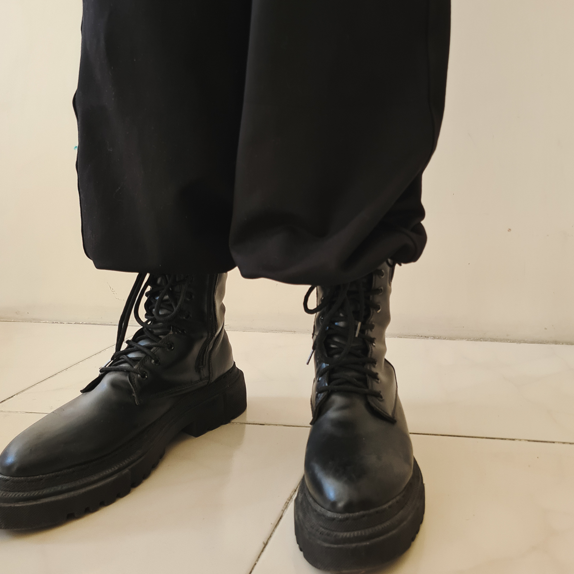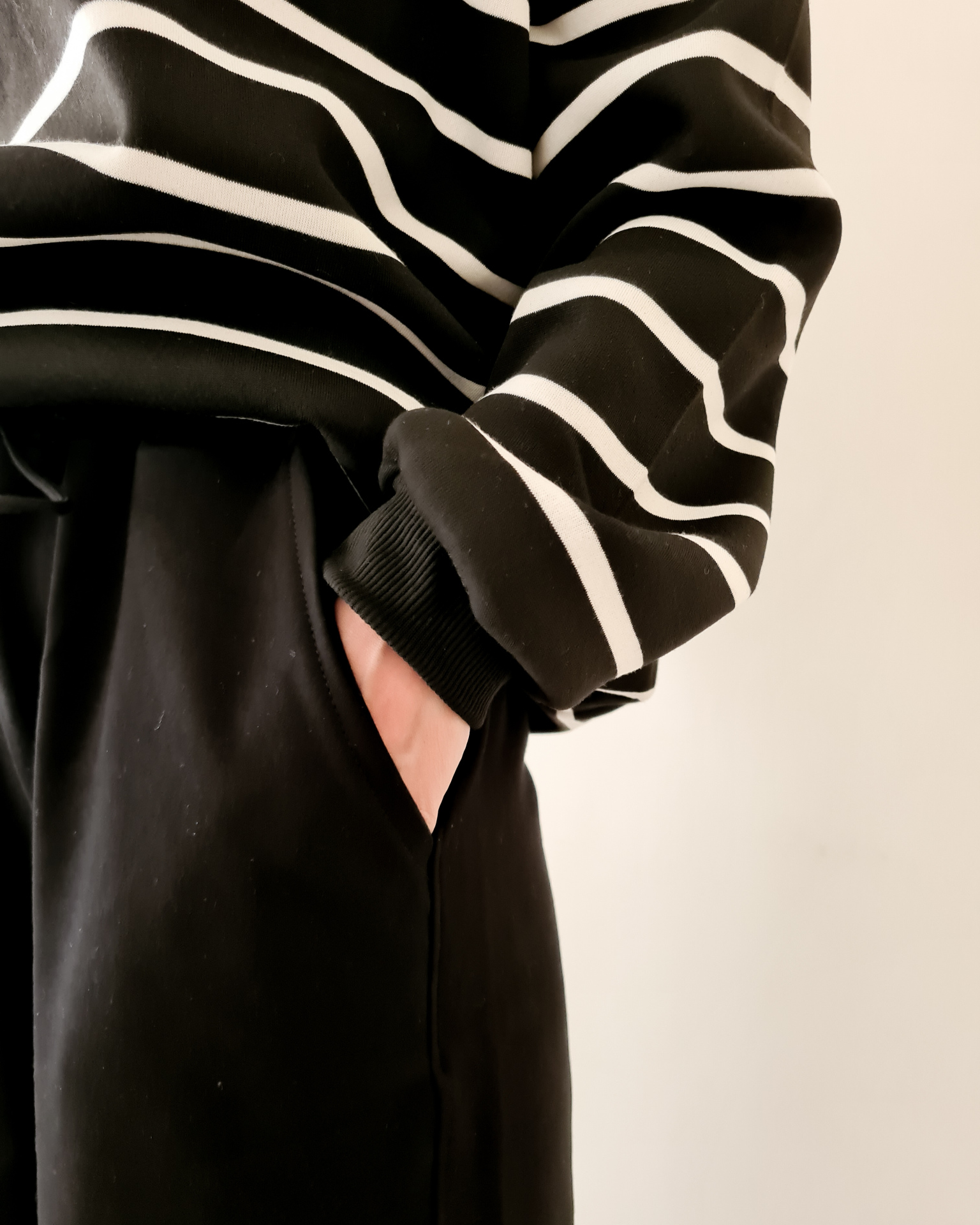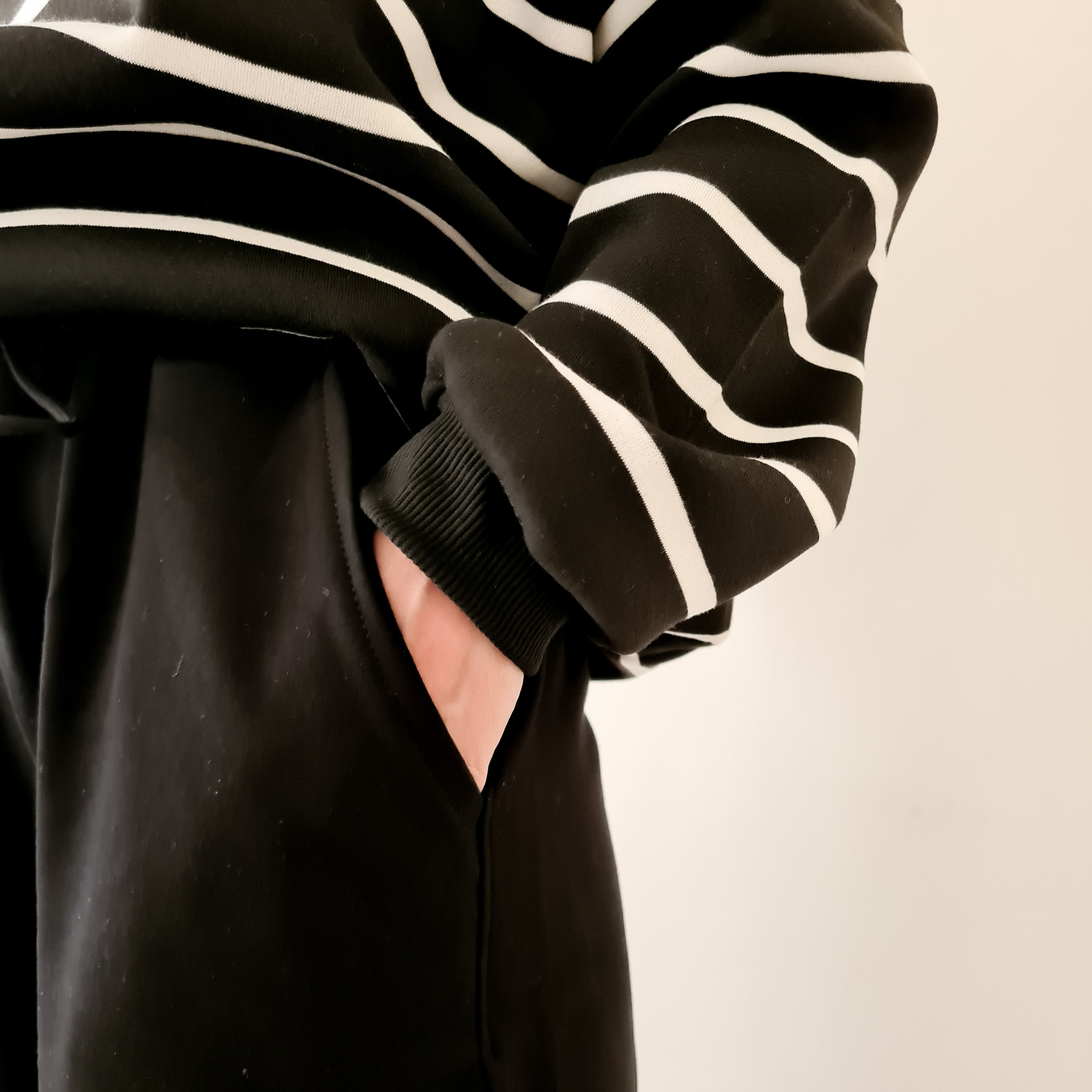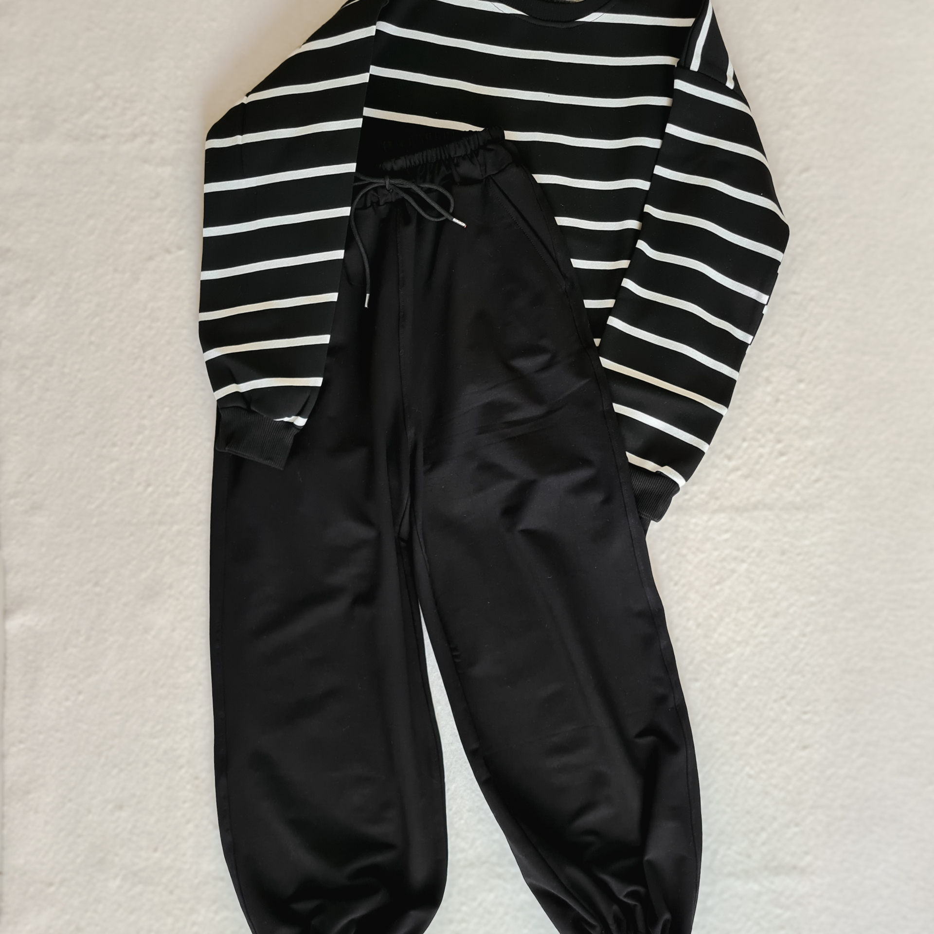 ست دورس یقه گرد و شلوار جاگر مشکی